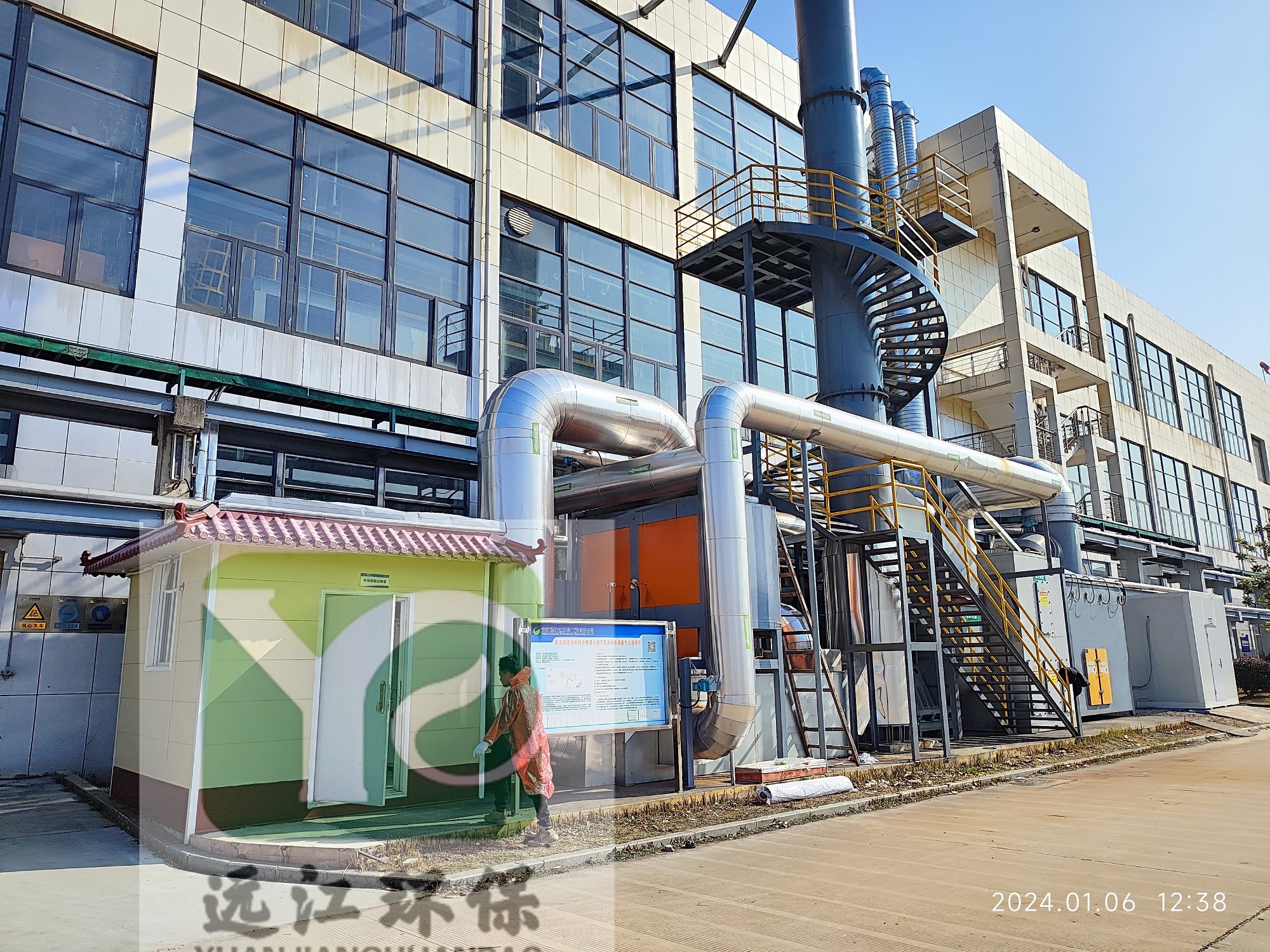 廢氣經過過濾後(hòu),轉輪通過(guò)電機帶動連續旋轉,交替進(jìn)入吸附區和(hé)脫附區(qū),吸附區占整個輪體麵積的10/12,車間廢氣直接通過吸附區後,VOCs組分被轉輪上的分子篩補集,穿過轉輪氣流可以(yǐ)直接排放。隨著轉輪逐漸吸附飽和,轉輪轉入脫附區,脫附區通過200℃的脫附風將VOCs組分脫附下來,形成(chéng)高濃(nóng)度小風量的廢氣;沸石轉輪脫附入(rù)口處設有二次加(jiā)熱,采用電加(jiā)熱補熱,當(dāng)脫附溫度不足時(shí)進行補熱。經過(guò)換(huàn)熱器預熱的VOCs廢氣溫度(dù)未達到催化氧化所(suǒ)需溫度時(shí)需經過電加熱進行加熱,使(shǐ)其穩(wěn)定在反應(yīng)所需溫度280-300℃。催化床內(nèi)填充著附著有貴金屬催化劑的陶瓷載體,當(dāng)氣流通(tōng)過時其中的VOCs組分會在(zài)催化劑表麵發生(shēng)氧化反應,分解為CO2和(hé)H2O,並(bìng)放出熱量。廢氣達(dá)標排放。
