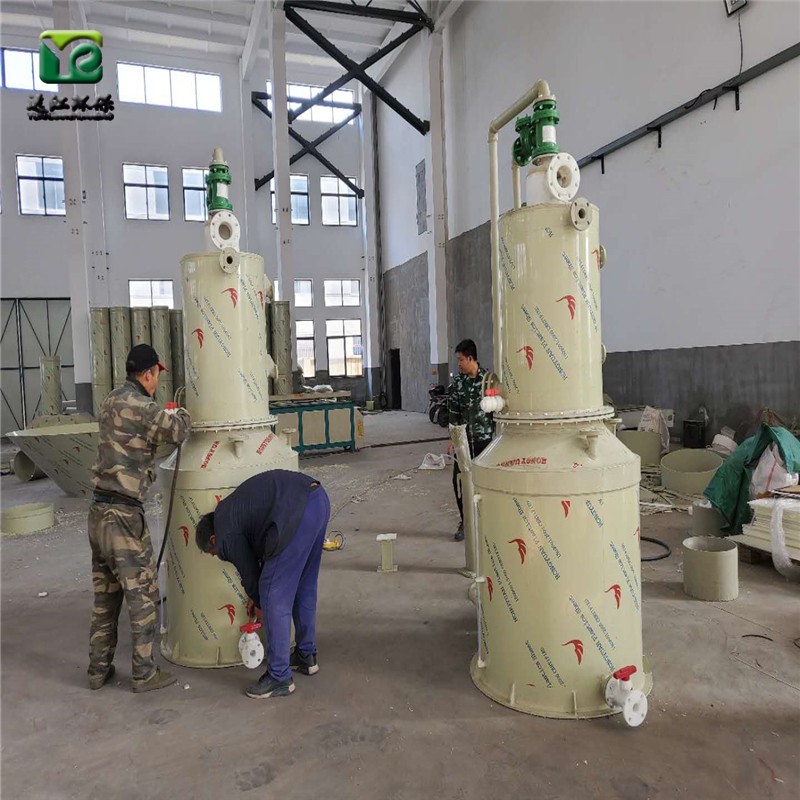 YJ-B-酸霧淨(jìng)化塔采用(yòng)圓形塔體,通過法蘭分(fèn)段連接。具體結構由儲液罐(guàn),進氣段(duàn),多級噴射段,旋流板和出氣錐蓋組成。它的特點是易於製造,易於安裝和維修,強度高,占地麵(miàn)積小,除水部分:塑料隔離(lí)式產生水氣分離;噴霧形式使用多層填料和多級噴霧。進行接觸並提高淨化效率。